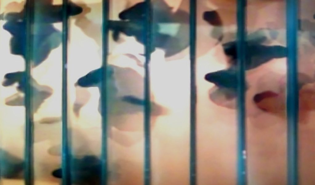Using as a starting point, my Ebb and Flow footage of the human forms gliding across the translucent stairs, I manipulate the perception of scale as well as of organism by slowing down the video footage until the stride of a human footstep is transitioned and its identity obscured into a sea of other ‘like’ organisms. I find it endlessly fascinating to observe that which forms a pattern of movement or embodiment on one scale and within one entity, is echoed similarly on a much larger or much smaller scale by another entity.
