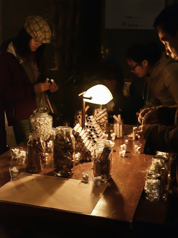 At a table suggestive of an old-style banking hall, participants were invited to ‘take a penny’ and partake in the collective archival process by filling coin-roller sleeves with penny-mints thus keeping the memory alive for this communal little mitzvah, this impressive level of exchange, this very storied thing called the penny.