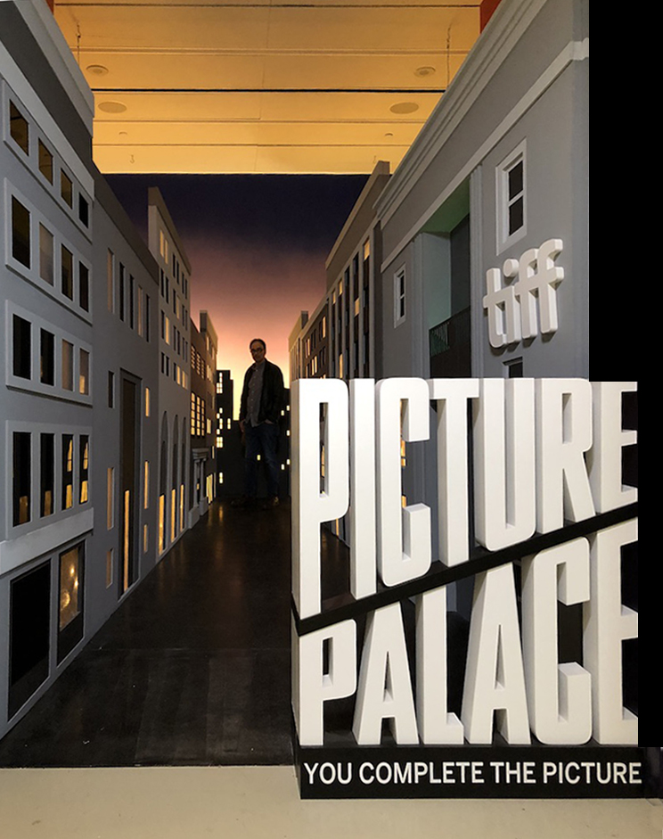 Drawing on the aesthetics of global film posters, I was asked to create a 3D film poster environment within the atrium of Toronto International Film Festival’s Lightbox. This installation was open to the public and was meant as an inviting entry point and enticement to visit a larger, affiliated and ticketed exhibition mounted within the Lightbox entitled TIFF PICTURE PALACE.